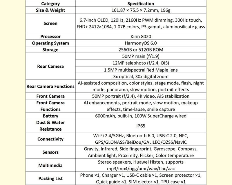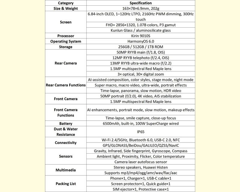 Il top di gamma Nova 15 Ultra, anch’esso con Kirin 9010S, spinge le prestazioni al massimo con una fotocamera principale da 50 MP RYYB, teleobiettivo periscopico 3,7x e obiettivo ultra-grandangolare da 50 MP. Integra ricarica wireless da 50 W, flash a doppia lunghezza focale e comunicazione satellitare TianTong. Lo schermo OLED LTPO da 6,84 pollici con vetro Kunlun temperato riduce i riflessi del 65% e migliora la resistenza ai graffi di 8 volte. La batteria da 6.500 mAh con ricarica rapida da 100 W assicura autonomia e stabilità. Disponibile in versioni da 12+256 GB (4.199 yuan), 12+512 GB (4.499 yuan) e 12+1 TB (4.999 yuan), il modello Ultra si distingue anche per la certificazione IP68+IP69, cornice in lega di alluminio e cover posteriore in fibra di vetro.