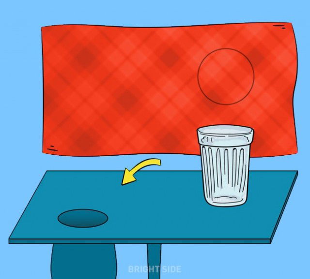 Il trucco del bicchiere scomparso è altrettanto famoso. Il bicchiere viene messo sul tavolo e coperto con un fazzoletto. Il mago poi alza il fazzoletto ed il bicchiere finisce per aria e scompare. In realtà il bicchiere finisce in un apposito buco nel tavolo. L’attenzione del pubblico viene incentrata sul fazzoletto grazie all’abilità dell’illusionista, mentre il bicchiere scompare tranquillamente sotto il tavolo.